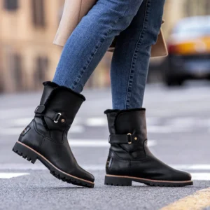Flat women’s Boot. WATERPOOF Natural Nobuck Leather. Warm lining. Removable anatomical insole. Natural, flexible and durable rubber sole. Shaft height: 28 cm. Heel height: 4 cm. 100% Made in Spain.
