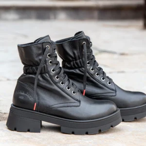 Flat women’s Boot. WATERPROOF Bark nappa grass leather. Warm lining. Removable anatomical insole. Natural, flexible and durable rubber sole. Shaft height: 28 cm. Heel height: 4 cm. 100% Made in Spain.