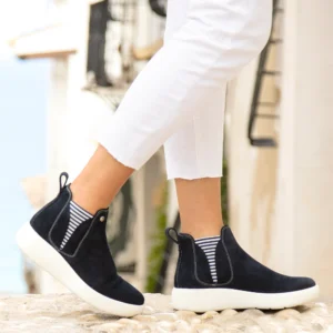 Flat women’s Boot. WATERPOOF Taupe Nobuck Leather. Warm lining. Removable anatomical insole. Natural, flexible and durable rubber sole. Shaft height: 28 cm. Heel height: 4 cm. 100% Made in Spain.