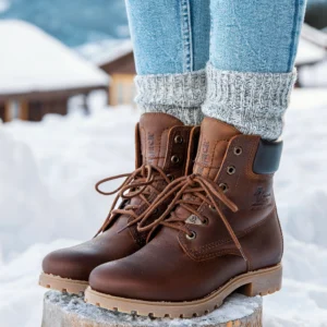 Flat women’s boots. WATERPROOF Bark Napa Leather. Velcro Closure. Sheepskin lining. Removable anatomical insole. Natural, flexible and durable rubber sole. Shaft height: 19 cm. Heel height: 4 cm. 100% Made in Spain.