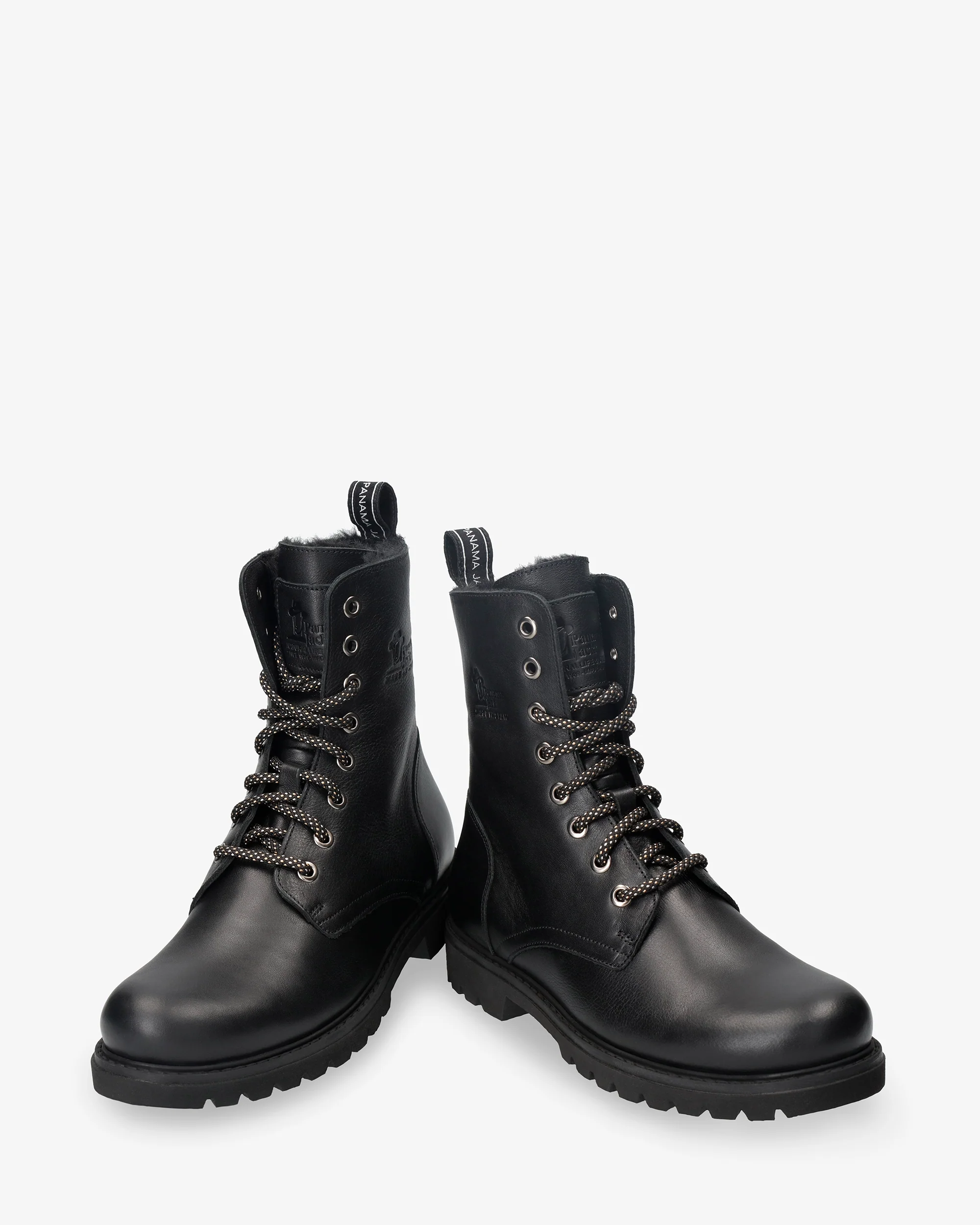 Flat women’s boots. WATERPROOF Black Napa Leather. Lace and zipper closure. Warm lining. Removable anatomical insole. Natural, flexible and durable rubber sole. Shaft height: 16.5 cm. Heel height: 4 cm. 100% Made in Spain.
