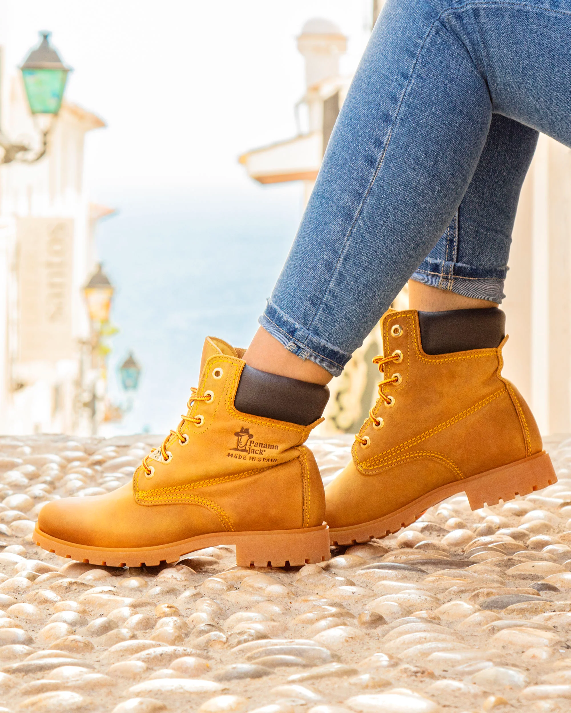 Flat women’s boots. WATERPROOF Vintage nappa grass leather. Lace-up Closure. Leather lining. Removable anatomical insole. Natural, flexible and durable rubber sole. Shaft height: 14 cm. Heel height: 4 cm. 100% Made in Spain.