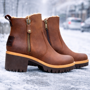 Women’s ankle boots with heels. WATERPROOF Black Napa Leather. Zip Closure. Sheepskin lining. Anatomical insole. Flexible and durable TPU rubber sole. Shaft height: 11,5 cm. Heel height: 7.5 cm. 100% Made in Spain.